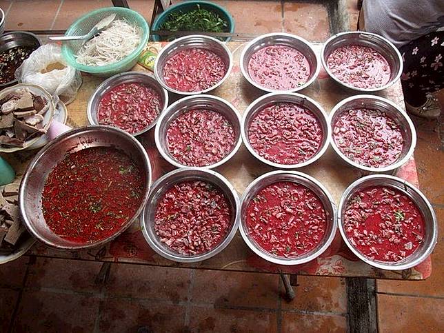 Darah hewan ini biasanya dimasak dengan kuning telur, rempah-rempah, dan kacang.